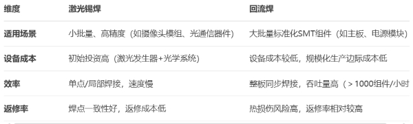 建議企業(yè)根據(jù)產(chǎn)品類型分層布局:標準化大批量用回流焊,精密組件用激光錫焊,以平衡質(zhì)量與成本。